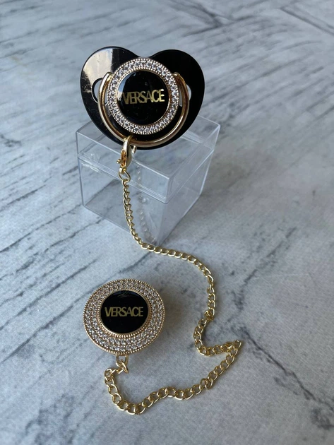 Комплект соска пустушка з утримувачем зі стразами Versace чорна