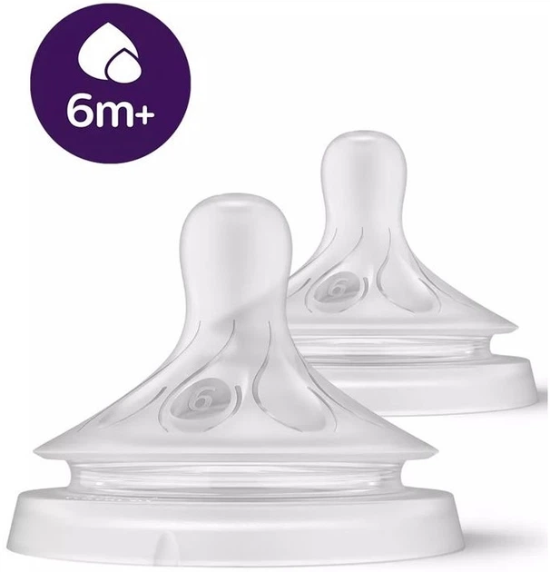 Соска Avent Natural 6міс+, силіконова, Природний потік, для густої їжі, 2шт