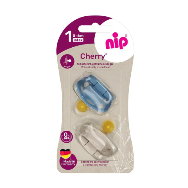 Пустушка Nip Вишенька, 0-6 міс., латекс, для хлопчика, 2 шт. (Блакитно-бежеві)