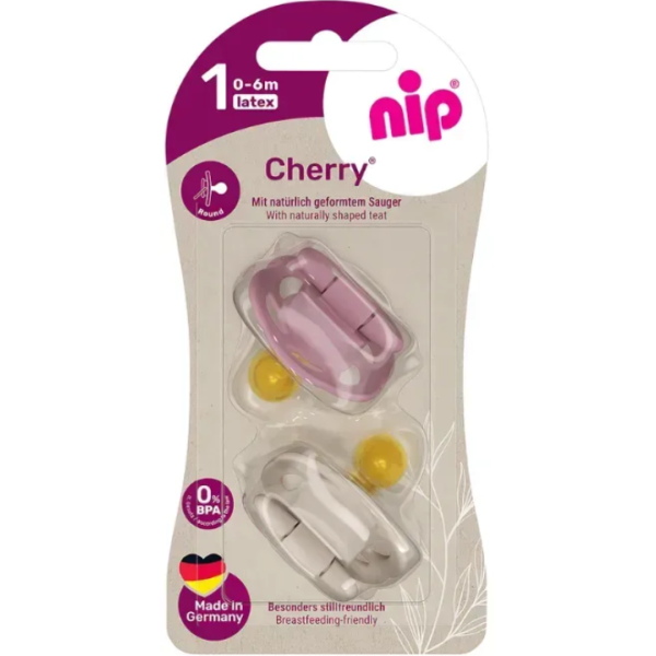 Пустушка Nip Вишенька, 0-6 міс., латекс, для дівчинки, 2 шт. (Рожево-бежеві)