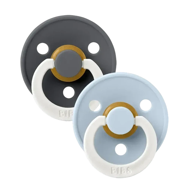 Пустушка BIBS 0-6 Colour Latex Round (кругла) – Steel Blue / White, 2 шт