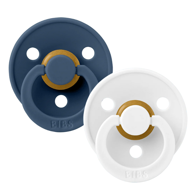 Пустушка BIBS 0-6 Colour Latex Round (кругла) – Steel Blue / White, 2 шт