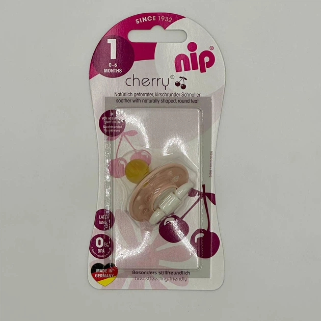 Пустушка латексна з круглою соскою природньої форми Вишенька 0-6 міс Nip Рожевий