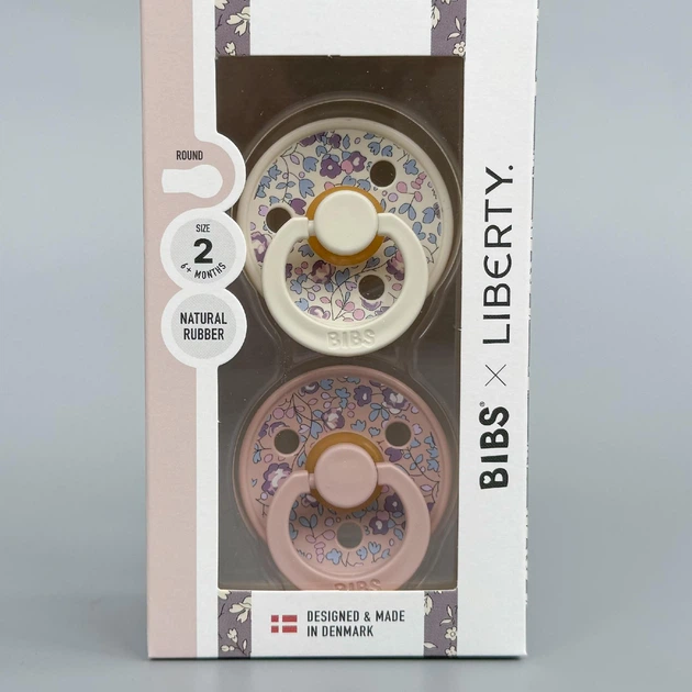 Пустушка BIBS розмір 2 (6-18 міс) x Liberty Colour Latex Round (кругла) – Eloise Blush / Ivory Mix (2 в упаковці)