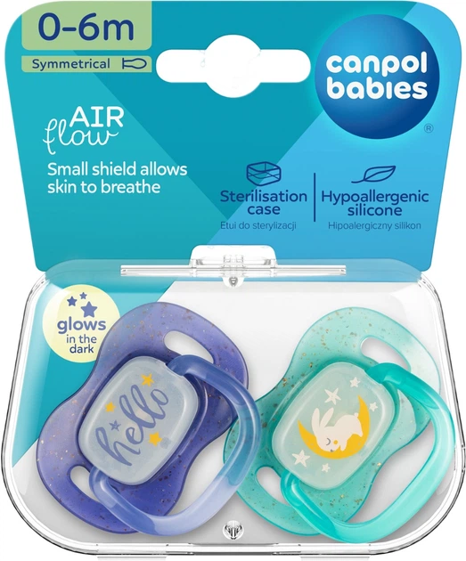 Пустушка силіконова симетрична Canpol babies NightGlow 0-6 місяців 2 шт (34/942blu)