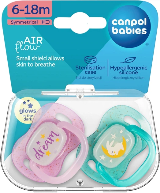Пустушка силіконова симетрична Canpol babies NightGlow 6-18 місяців 2 шт (34/943pin)
