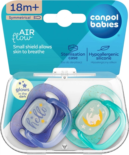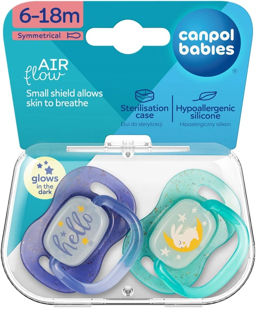 Пустушка силіконова симетрична Canpol babies NightGlow 6-18 місяців 2 шт (34/943blu)