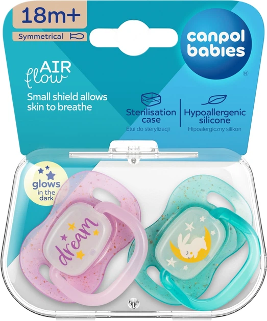 Пустушка силіконова симетрична Canpol babies NightGlow 18+ місяців 2 шт (34/944pin)