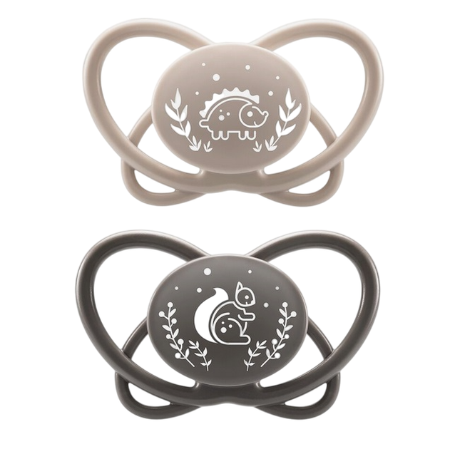 Пустушка силіконова 2 шт NIP Мій метелик Green Line 16-32 міс з футляром для стерилізації коричнева / сіра