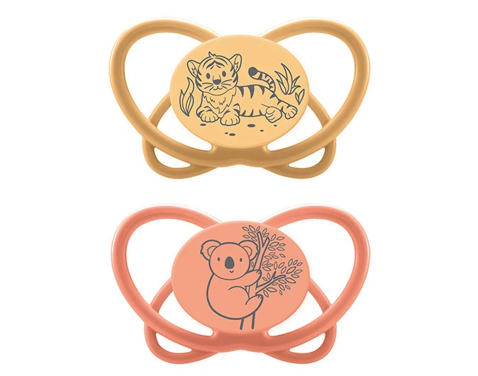 Пустушка силіконова 2 шт NIP Мій метелик 5-18 міс з футляром для стерилізації бежева / коричнева