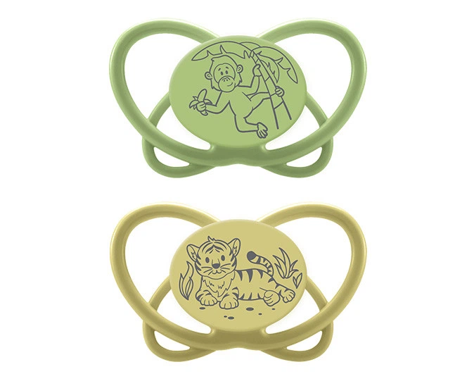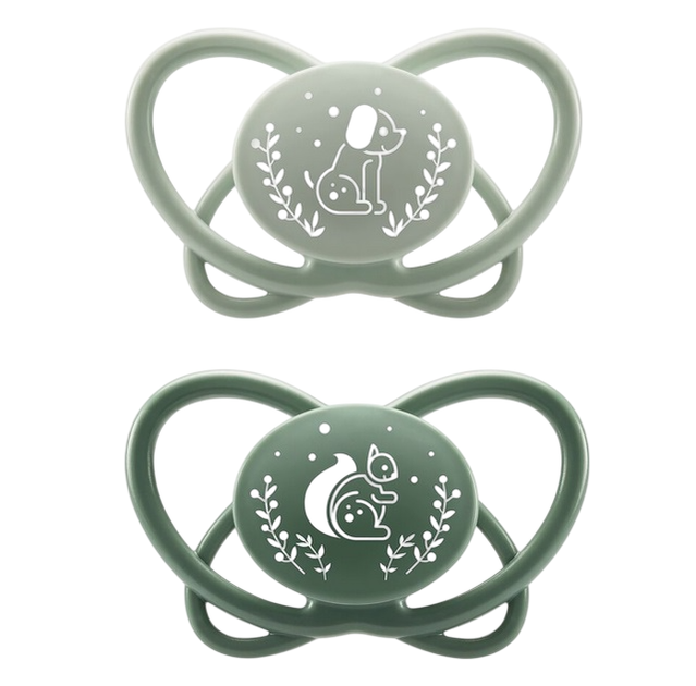 Пустушка силіконова 2 шт NIP Мій метелик Green Line 0-6 міс з футляром для стерилізації зелена / бежева