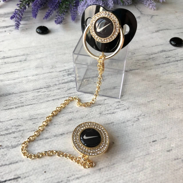 Брендовий комплект соска пустушка з утримувачем зі стразами чорна