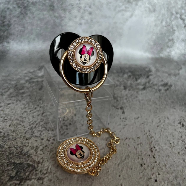 Брендовий комплект пустушка соска з утримувачем зі стразами з міккі 4 чорний