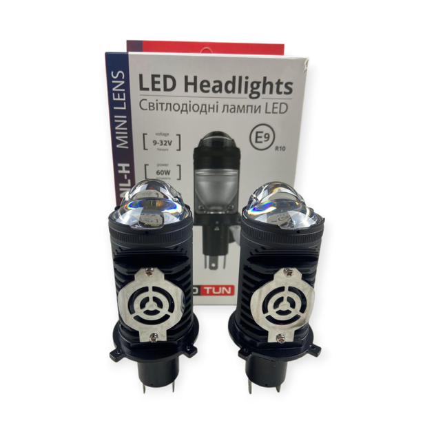 Автолампа LED з лінзою H4 12V-24V 60W EUROTUN NL-H 6000К 10000L CAN BUS радіатор