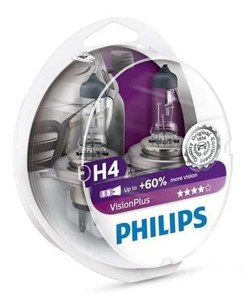 Автолампа H4 12V 60/55W P43t-38 VisionPlus 60 більше світла комплект 2 шт галогенки для авто STM03670