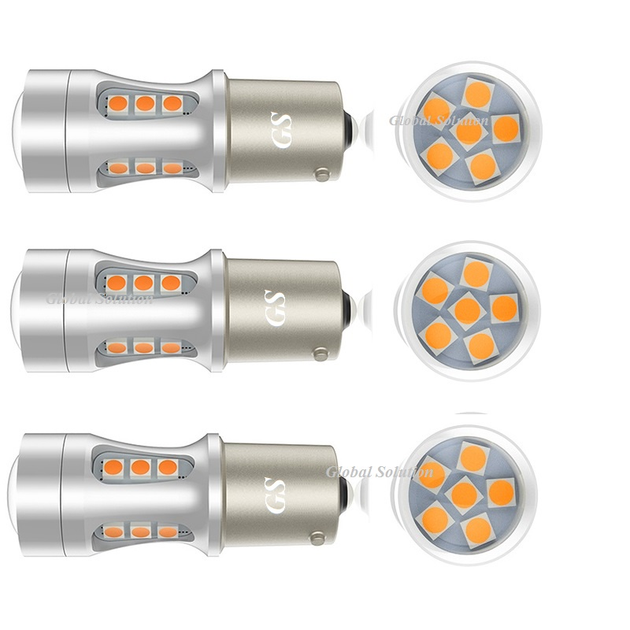 Автолампа GS 1156-3030-18SMD 12-24V Одноконтактна Yellow (зміщений контакт)