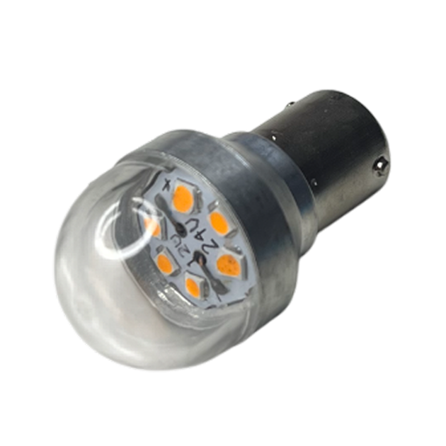 Світлодіодна автомобільна лампа жовтого кольору R5 12-24В 1 контакт зі зсувом BAU15S - P21W 6 SMD