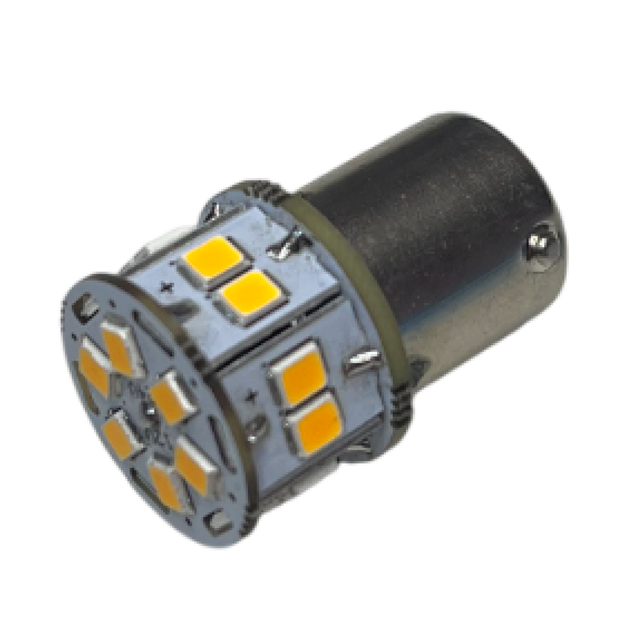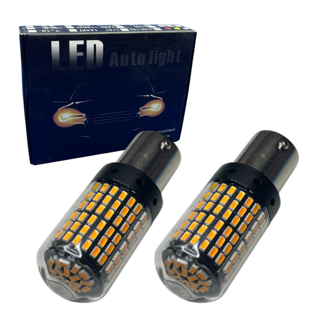 Світлодіодна автомобільна лампа жовтого кольору R5 12-24В 1 контакт зі зсувом BAU15S - P21W 144 SMD