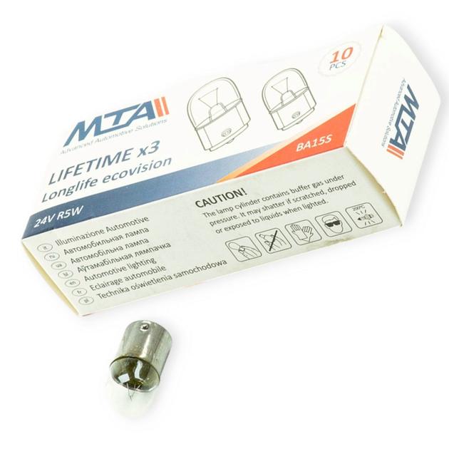 Лампа автомобільна 24V 5W Ba15s R5W (освітлення номерного знака, габарити, паркувальне освітлення/габарити) (10 шт.) MTA