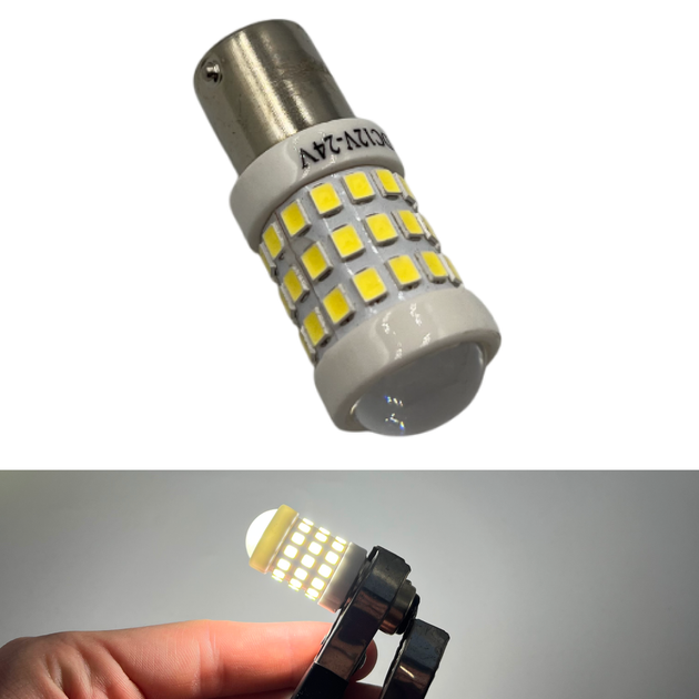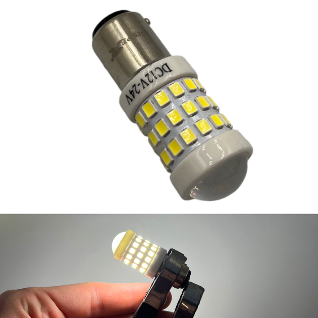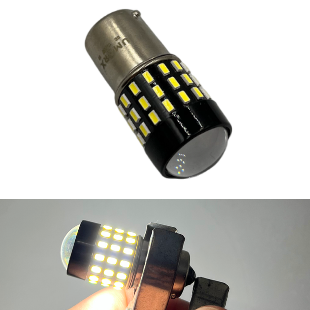Світлодіодна автомобільна лампа R5 12-24В 1 контакт 54 SMD з лінзою
