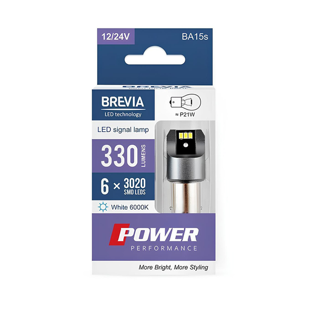 Лампа LED 12-24V 330Lm (2шт) P21W BA15s BREVIA 10101X2