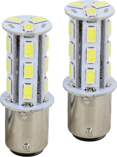 Лампочка 2-х конт. груша біла LED SMD 12V 24-діода P21/5W BAY15D (Futura) (к-т.-2шт.) 72811