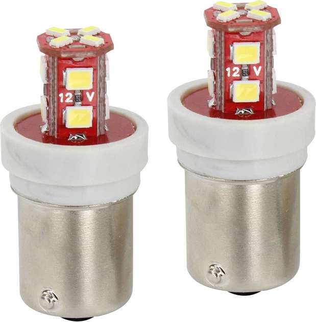 Лампочка 1-конт. груша біла LED SMD 12V 12-діодів RY10W BAU15s (Futura) (к-т.-2шт.) 70711