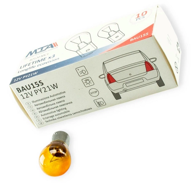 Автолампа A 12V PY21W BAU15s MTA Yellow зміщ. цоколь (10шт)