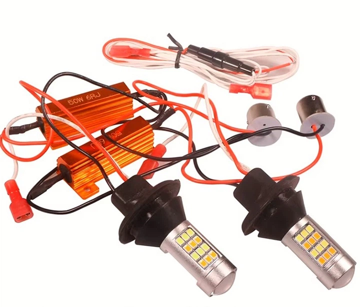 Світлодіод 12V 2 лампи Білий+ жовтий BAU15S SMD 42 зі зміщенням (1156-2835)