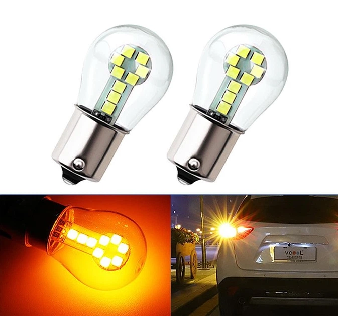 LED 1156 BA15S P21W лампа в автомобіль, 33 SMD, жовта Без бренду