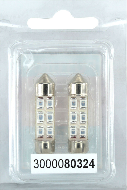 Лампочка 2-х цокольна LED T11C10W SMD біла 6-діодів 24V-1,7Вт SV8.5-8 41мм. (Futura) (к-т.-2шт.) 30421