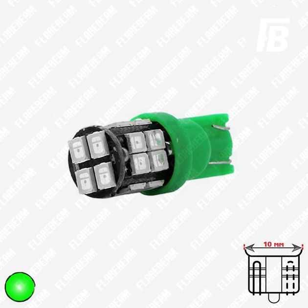 Лампа LED цоколь T10 (W3W W5W безцокольна) 12 В SMD 283520 (зелений)
