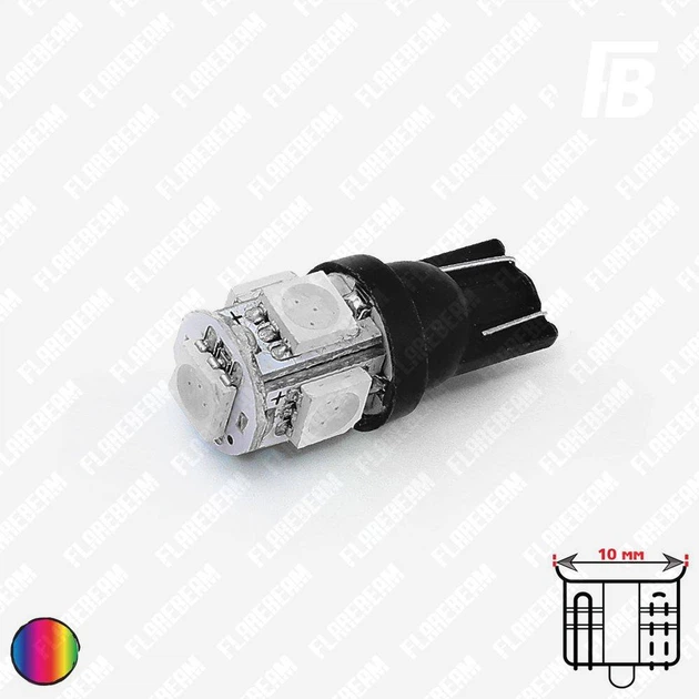 Лампа LED цоколь T10 (W3W W5W безцокольна) 12 В SMD 5050*05 (багатокольорова)