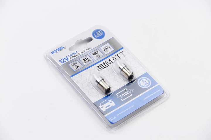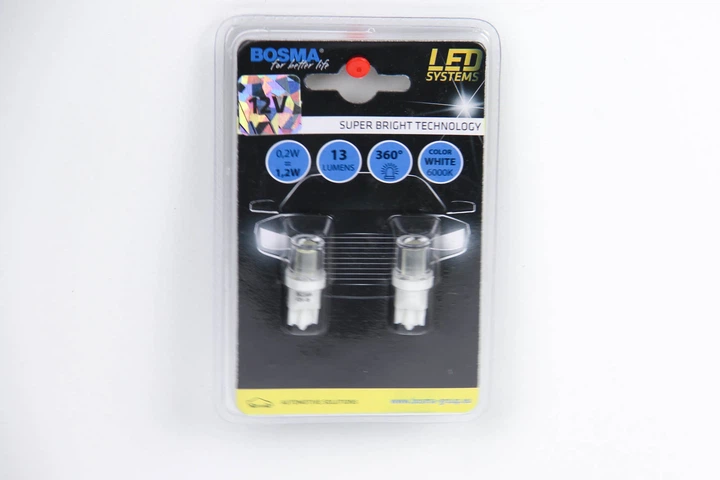 Автолампа BA9S LED 12V 2xSMD 2835 LED WHITE MAT Упаковка 2шт, BOSMA (5103)