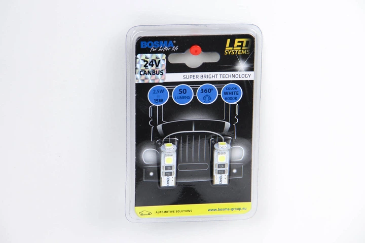 Автолампа T10 LED 24V 3XSMD 5050 LED WHITE DOUBLE POLARITY CANBUS Упаковка 2шт, BOSMA (4151)