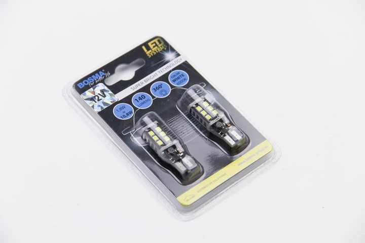 Автолампа T15 LED 12V 9XSTANDARD LED WHITE Упаковка 2шт, BOSMA (4274)