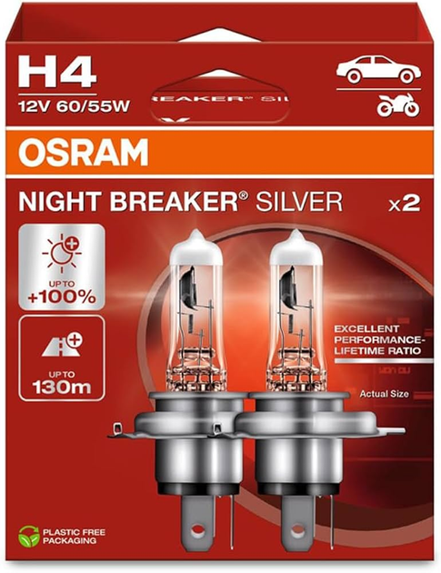 64193NBS-2HB OSRAM Лампа H4 12V 60W P43t NIGHT BREAKER SILVER +100