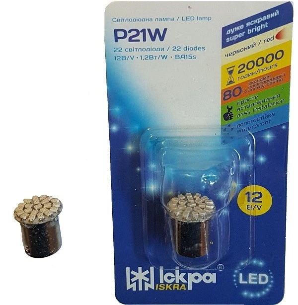 Автолампа LED ISKRA LL 120522S-R P21W 12V червона (1шт.)
