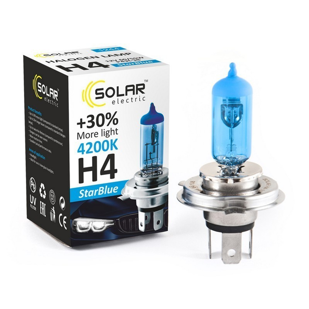 Галогенова лампа Solar H4 12V 60/55W P43t-38 StarBlue 4200K, SET