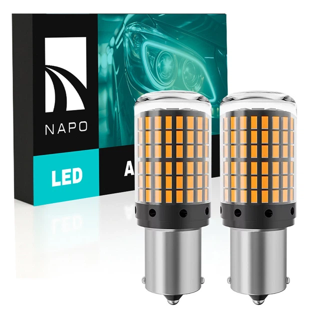 Комплект світлодіодних ламп NAPO LED 1156-3014-144smd P21W 1156 BA15S колір світіння бурштиновий 2 шт