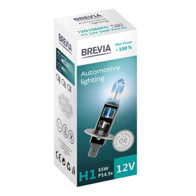 Галогенова лампа Brevia H1 12V 55W P14.5s для авто головного світла яскраве освітлення заміна фар (LI-D22-O)