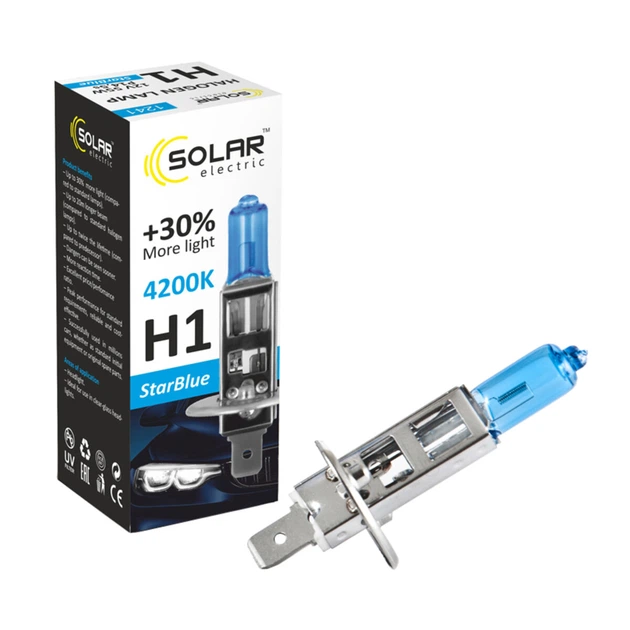 Галогенова лампа Solar H1 12V 55W P14,5s для авто головного світла протитуманних фар 4200K (1LO-TH11C)