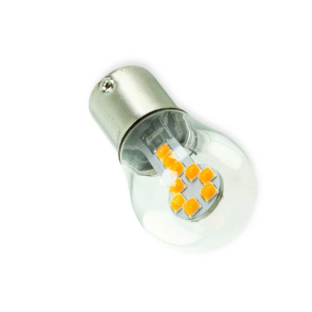 Автолампа світлодіодна А 12-21 YELLOW 18 SMD 3030 у скляній колбі Megalight