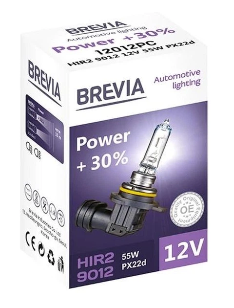 Лампа 12V HIR2/9012 55W + 30 "Brevia" (1шт) (12012PC)