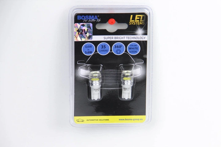 Автолампа T10 LED 12V 2XSMD 5630 LED WHITE MAT Pack 2, BOSMA (4069)