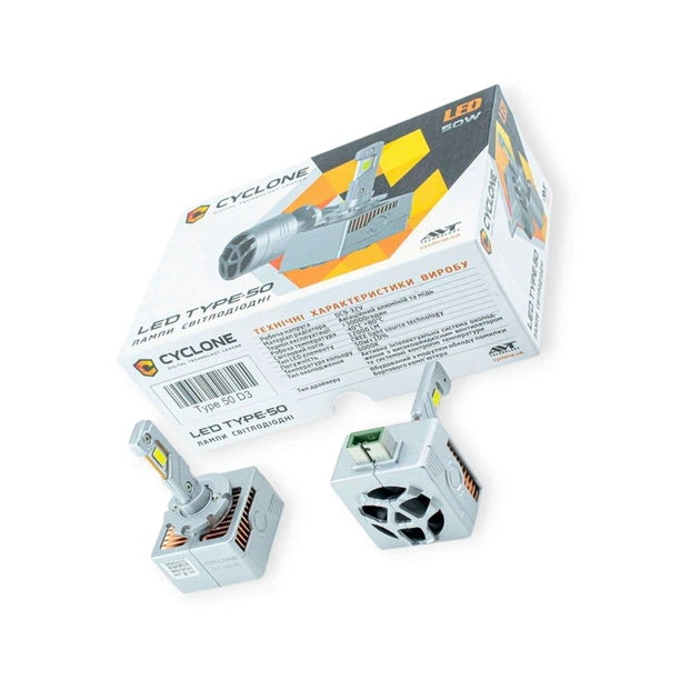 Лампа LED D3 12V 50W Type 50 6000K 12000L CAN BUS радіатор з вентилятором CYCLONE