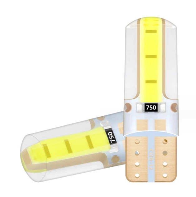 Світлодіод 12V Т10 Білий COB 12чип (Силіконова) №15