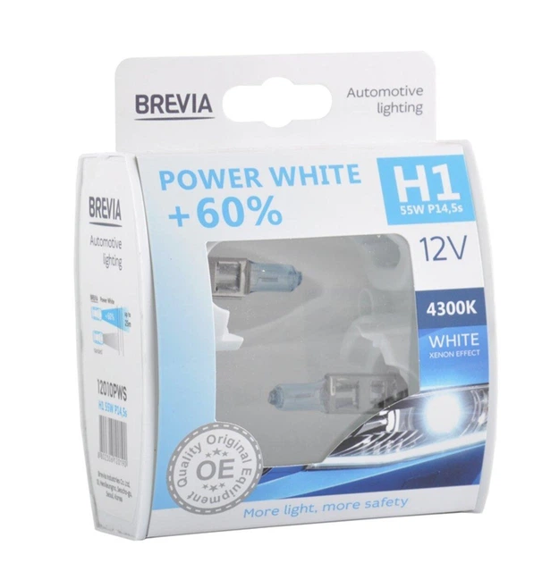 Галогенова лампа Brevia H1 12V 55W P14,5s Power White 4300K для автомобілів заміна штатного освітлення фари авто (LD-BN33A)