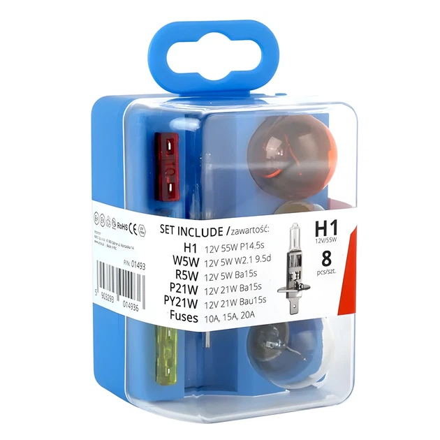 Набір галогенних ламп і запобіжників AMIO H1 8шт (01493)