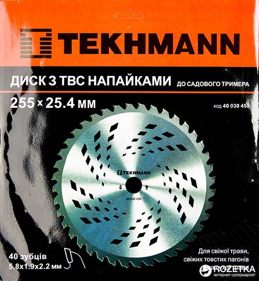 Ніж для тримера Tekhmann 40 ТВС зубців 255х25.4 мм (4823400304587)